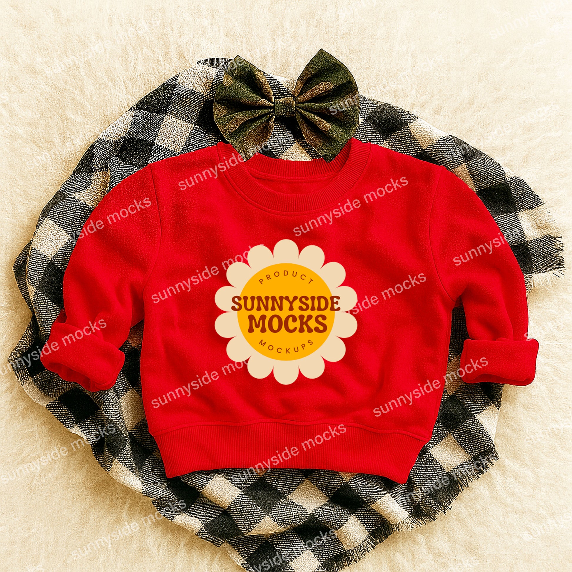 INSTANT DOWNLOAD - Rabbit Skins 3317 Sweatshirt - Red Toddler Sweatshirt Mockup Camo Bow Checkered